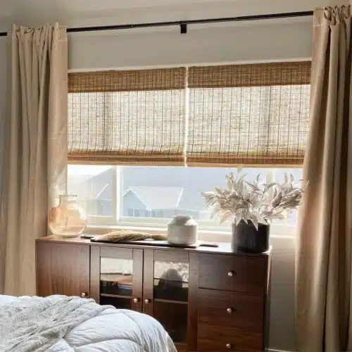 The Cinnamon Woven Shade adds natural warmth and organic texture to any interior. Crafted from a durable jute and bamboo blend, its soft weave and rich earthy tone create a cozy, inviting atmosphere. Designed to gently filter natural light, this eco-friendly woven shade offers the perfect balance of style, durability, and natural charm for any room.