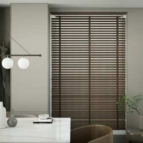 The Brown Vintage Wooden Venetian Blinds bring timeless elegance and natural warmth to any interior. Crafted from high-quality wood, their rich vintage brown finish adds character while allowing smooth, precise light control. Perfect for classic, traditional, and cozy home settings, these wooden Venetian blinds combine style, durability, and everyday practicality.