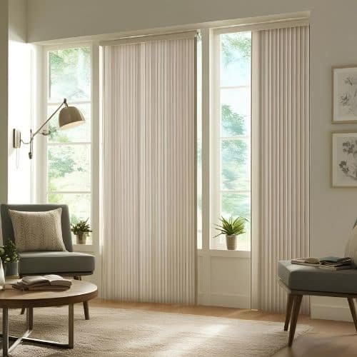 Our vertical layered blinds with curtains add a touch of sophistication and improve the practicality of your windows. Similarly, you can purchase durable yet cost-effective vertical vinyl blinds with low maintenance and smooth functionality.